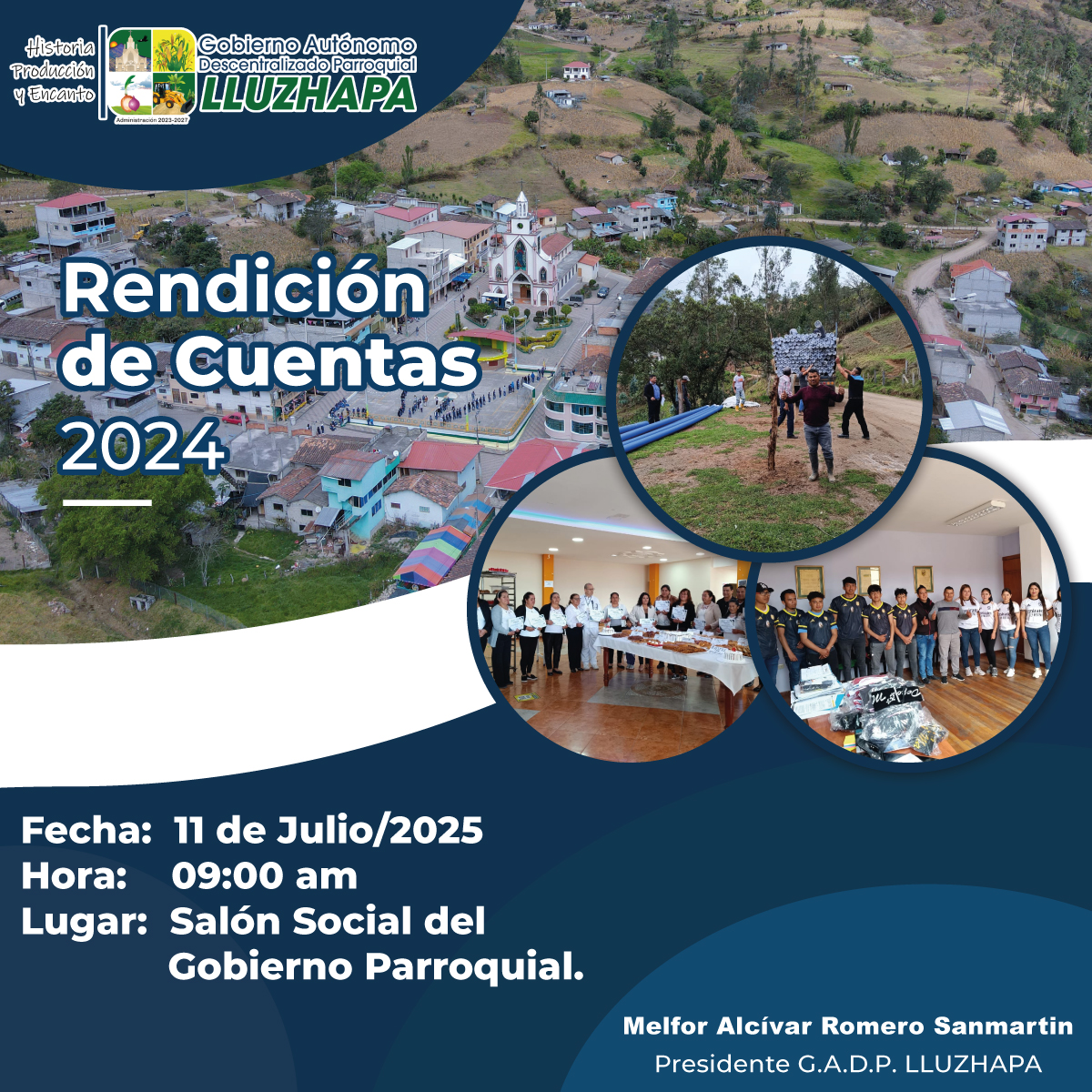Partiremos de una planificación articulada con los demás niveles de gobierno, para de esta forma fortalecer la gestión del Gobierno Parroquial de Lluzhapa es fundamental la participación ciudadana y la rendición de cuentas permanentemente a nuestro pueblo mandante, quien nos ha elegido democráticamente para gobernar con trabajo, responsabilidad, honradez y respetando las leyes vigentes para de esta forma dejar un precedente de continuo progreso y desarrollo.